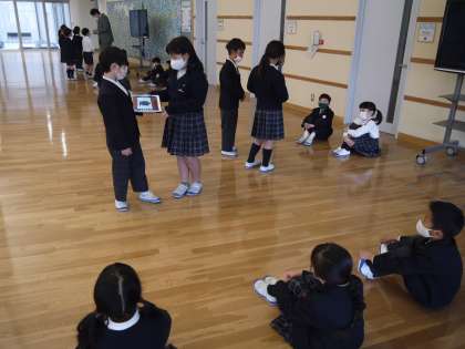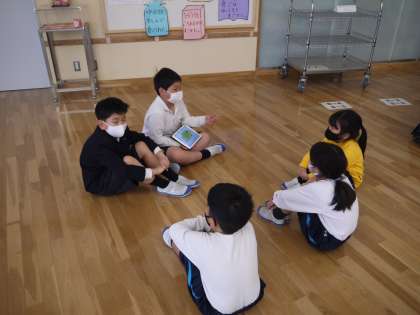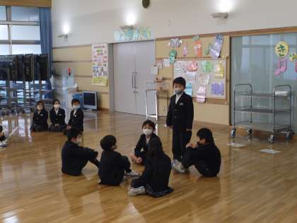 2年生は,外国語の学習で,1年生に読み聞かせをしました。