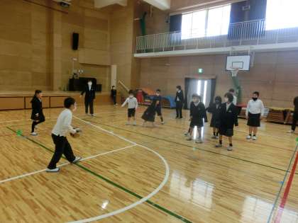 今日の特活の時間は「みんなであそぼう」ということで,1〜6年生で「転がしドッジボール」と「ボールキャリーゲーム」をしました。
