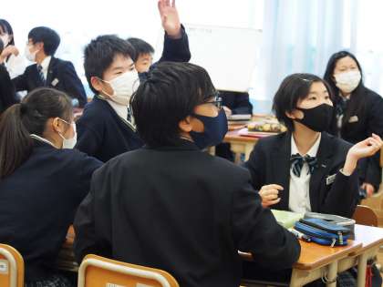 先生たちは英語で指示をして,生徒たちが班で話し合って答えている姿・・・私が学生時代に習った英語とは全く違う授業で,とても楽しそうでいいなぁ。
