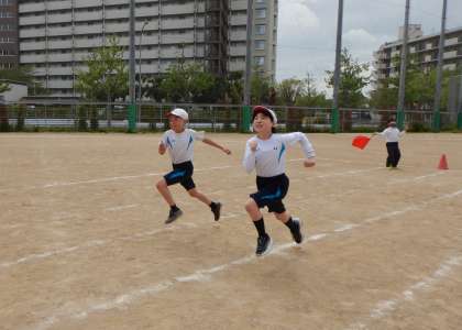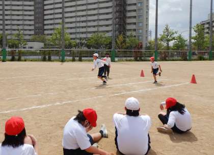 今年度初めての体育の学習では,50m走のタイムを測定しました。