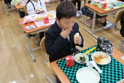 給食が始まり3日がたちました。子どもたちからは