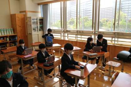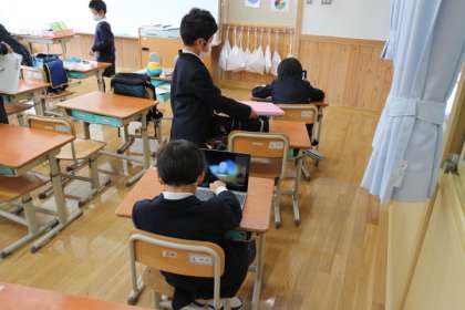 毎朝,生徒が登校すると,学習の用意をしてGIGA端末を立ち上げます。