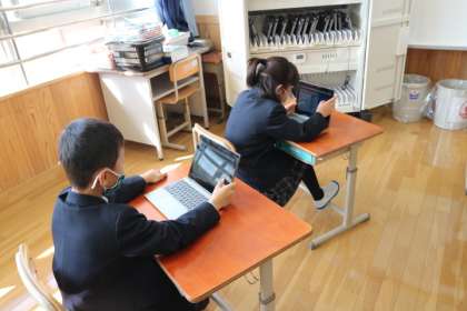 昨年度から生徒たちは,GIGA端末にふれてきて,だいぶ使い方にも慣れてきました。今は,できるだけたくさんふれる時間をとるようにしています。