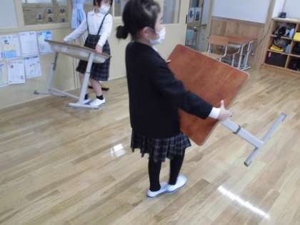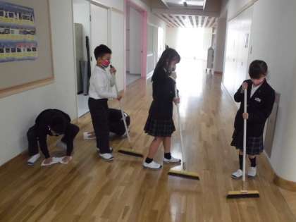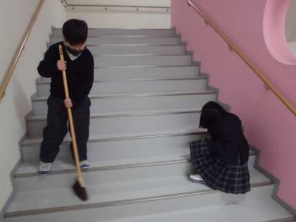 新しい場所でもきちんとできているかな,と様子を見に行くと・・・階段や廊下など,先生がみていなくても集中して掃除することができていました。