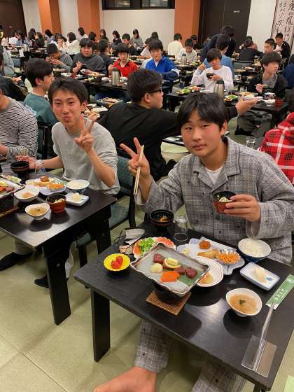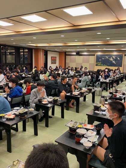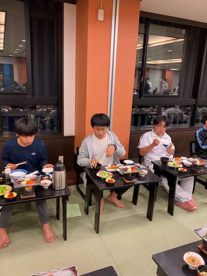 生徒のみなさんにとってはとても楽しい夕食のはずですが、この情勢の中、こちらはとても緊張の時間です。なんとかご馳走様の時間を終えました。少しホッとしています。