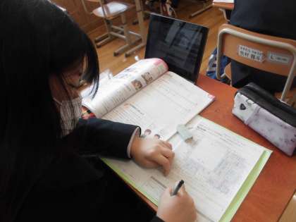 家庭科の授業では「見つめよう 生活時間」という単元の学習で,1週間の生活をふり返る活動をしました。健康な生活になっているのか,家族と過ごす時間があるのかといった視点で自分の生活をふり返る中で,課題を見つけることができました。