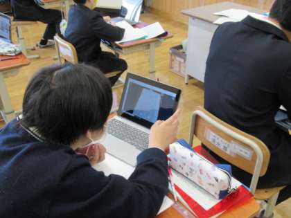 国語科の学習で,視点の違いに着目して読み,感想をまとめました。ロイロノートを使って,友達が書いた文章を読み合いました。その後,新しく気づいたことを交流しました。今後もICT機器を効果的に活用して,自分の考えを広げていきたいと思います。