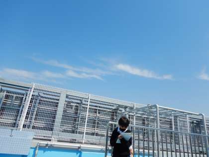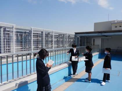 天気は,雲のようすとどのような関係があるかどうかを調べるために,屋上にあるプールから空の様子を観察しました。