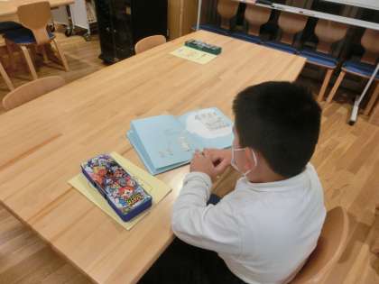 今年度も図書室で本を借りることを楽しみにしていた子どもたち,図書室の先生の話を真剣な表情で聞いていました。「図書室の本が迷子にならないように,ちゃんとお家(元あった場所)に返してあげましょう」という先生の言葉に「はい!」と,とてもいい返事をしていました。今年度もたくさんの本に親しんでほしいと思います。