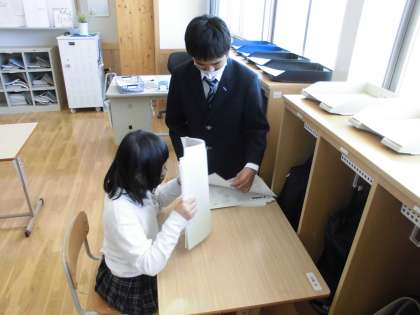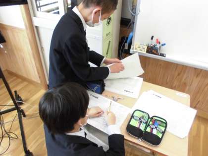 チームステージ・ビジョンステージのおたよりは1組の生徒たちが配布する準備のお手伝いをしてくれています。各クラスの人数分の仕分け作業です。たくさんの学級があるので助かります。ありがとうございます!