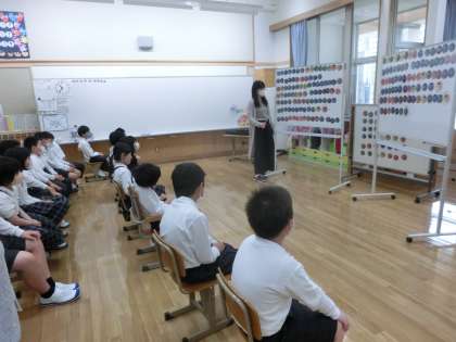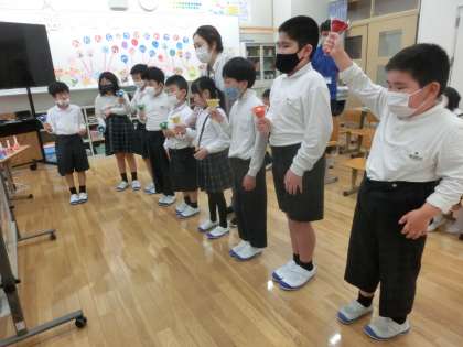 音楽の時間で「ミュージックベル」の演奏に取り組んでいます。1学期の曲は,映画「スタンドバイ三—ドラえもん2」の主題歌,菅田将暉の「虹」です。「この曲,知ってる!ドラえもんだぁ」と子どもたちの反応もよく,とても意欲的に練習しています。「ミュージックベル」がはじめての1年生は上級生と一緒に「きらきらぼし」に挑戦しています。「1年生すごいね!上手にできているよ」とほめられて,とても嬉しそうでした。みんなで心を一つに,すてきな演奏ができるように学習を進めていきたいと思います。