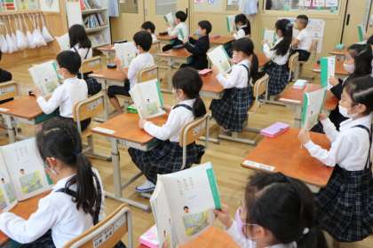 声を合わせて音読していました。