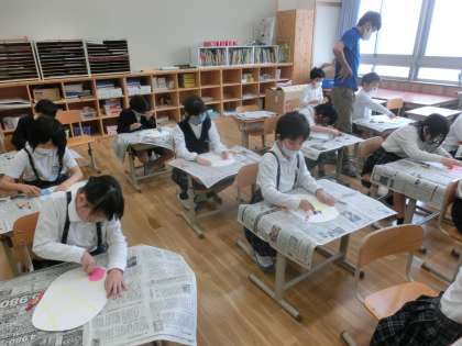 自立活動の時間に取り組んでいる「ダンス」の衣装作りをしました。