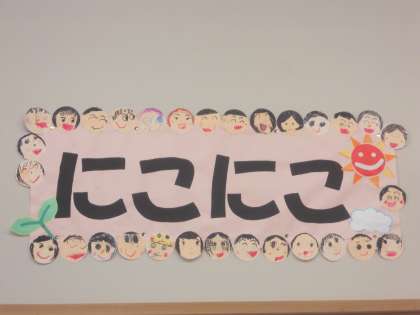 一人一人の笑顔に囲まれた「にこにこ」の文字。