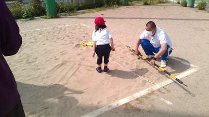 3つ目は立ち幅跳びです。しっかりうでを振って,前へピョン!!