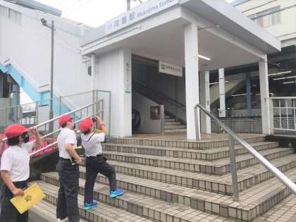 公園や堤防,駅や住宅地など,班ごとにコースを設定し,“向島の町はみんなにとって住みやすい町なのか”を調査してきました。