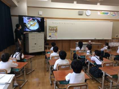 調理員さんが給食を作ってくださっている様子を動画で見たり,「しせい」「マナー」「食べ方」について,これから気をつけたいことを発表したり,とても楽しく学習できました。その日の給食は,みんないつも以上にとってもいい姿勢で,パクパク食べていました。