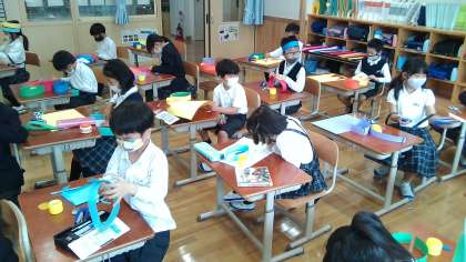 とちゅうけいかを見せ合ってわらったり,おしえ合ったりしながらたのしく作っていました。