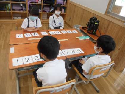 慣れてくると,数図ブロックを数えなくても分かってきていました。
