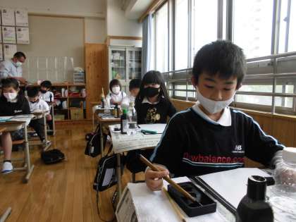鉛筆とは違う,筆の良さを味わいながら学習してほしいと思います。