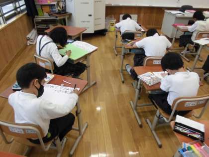 今年度頑張っていくことをみんなで共有し,ポスター作りと手洗い石けんの補充の活動をしました。この日作ったポスターは十の宣言の中にある「えがおですすんであいさつをします」の取組でポスターを作りました。6月1〜4日の期間に各委員会でこの十の宣言の取組をしますが,給食に関する取組では「残菜0キャンペーン」があります。給食後に各クラスの残菜の量を調べます。