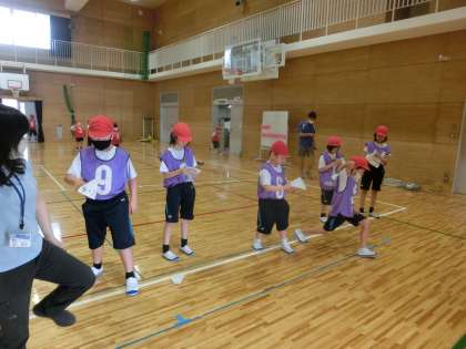 の3つのブースを数分おきにまわっていく「サーキット」をしました。どの活動もボール操作を正確に行えるようになるための大切な練習です。はじめての「サーキット」でしたが,「楽しかった!またがんばって練習したい」と授業を振り返っていました。