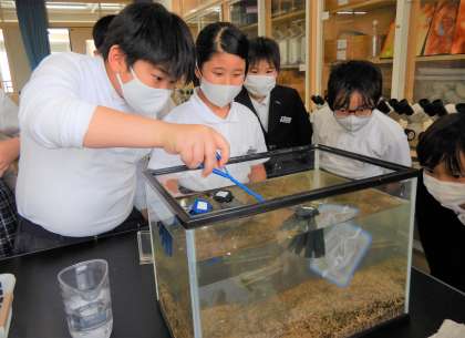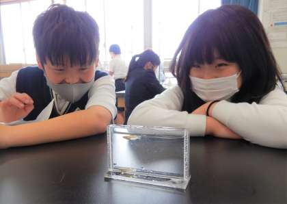 今日の理科の学習では,泳いでいるメダカを観察し,めだかのおすめすを見分け方を学びました。