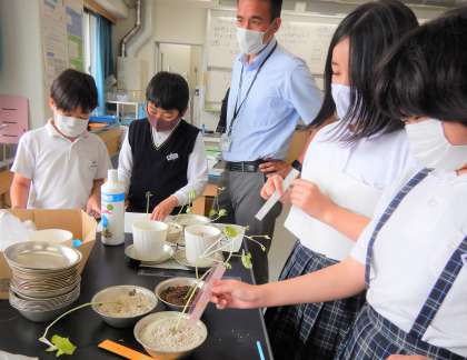 植物の成長には,発芽に必要な条件である,水・空気・適した温度も関係していることを学びました。