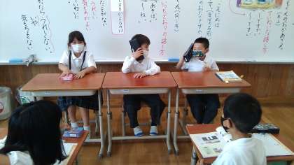 「おにいちゃんのでんわ」というお話をとおして,人によって話し方をかえるのはどうしてか,みんなでいけんを出し合いました。