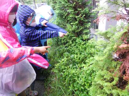 「あ,なめくじがいる。」「あそこだよ。」
