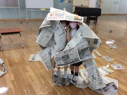 体ぜんたいをつかって,しんぶんしとなかよしになりました。