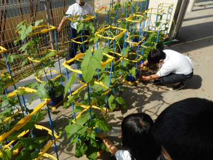 ぐんぐん大きくなるあさがおの様子に子どもたちは植物を育てることの喜びを感じているようです。