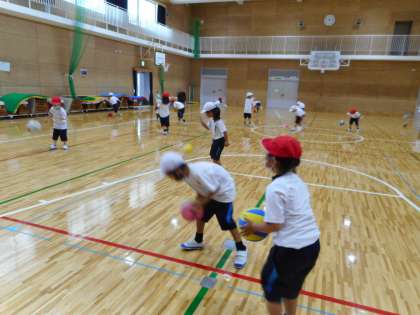 ボールを使ったお勉強に子どもたちはとてもうれしそうな表情をしています!