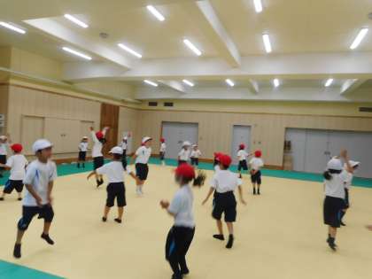歩いたり,走ったり,ジャンプしたり,手をたたいたり,まわったり,ころがったり。