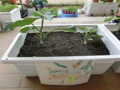 もうすぐ夏本番,畑やプランターのやさいたちはぐんぐん大きくなっています。