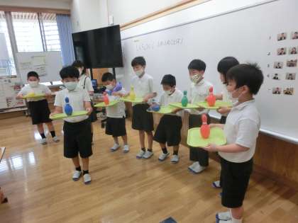 「ふわふわ言葉」で友だちと声をかけあいながら上手に運ぶことができました。