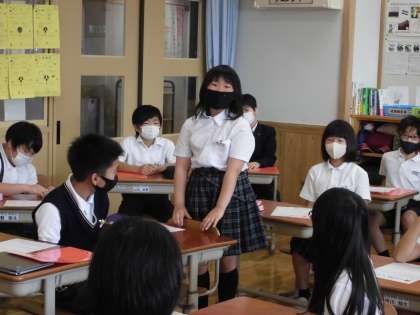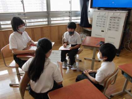 友だちの考えに「同じです」「似ています」「ちょっと違います」など