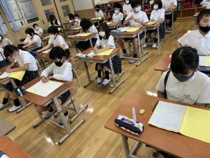 蓮花タイムでは,映像を見ながら高齢者問題について考えました。日本で高齢者が急激に増え続けていることや,老々介護や孤独死などについても考えました。初めて知ったことも多かったようで,一人一人が真剣に問題と向き合っていました。