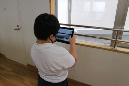 今日は,昨日に学んだ垂直のほかに,平行があることを知り,身の回りにある垂直・平行な直線を探しにいきました。
