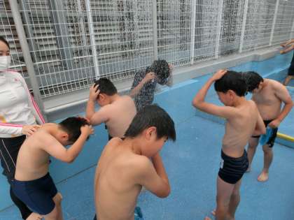 体操をして,シャワーをあびて,いざ入水!
