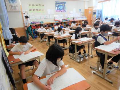 本日の総括考査2は,国語・算数・社会の3教科で実施しました。