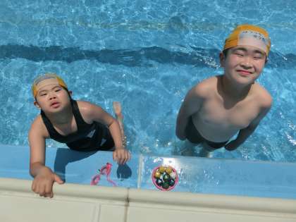 今日はとてもいい天気で「早くプールに入りたい!」と,3・4時間目の学習をとても楽しみにしていた子どもたちです。