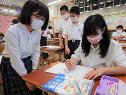 友だち同士でアイディアを出し合うことで,ほぼ全員が問題を解くことができていましたね。式の中に記号の入るパターンの問題は,今後,後期課程の数学でもよく出てきます。