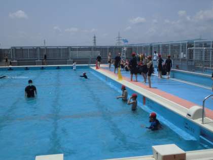 2年ぶりの水泳学習は,一斉にプールに入れなかったり,