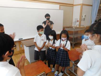 掃除の最後にはお互いのよかったところを伝え合うふり返りを言います。