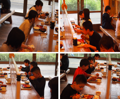 夕食の様子を何度かに分けてアップします。本当はここが一番会話が弾んで,笑顔がはじける時間なのですが・・・。しっかり前の人とは仕切られており,対策が取られている分,前の人との会話はほぼできない状態です。残念ですがしかたありませんね。おいしそうに食べる写真をどうぞ!