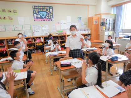 5年生の道徳の学習は,3学級の担任が週ごとに交替しながら行います。