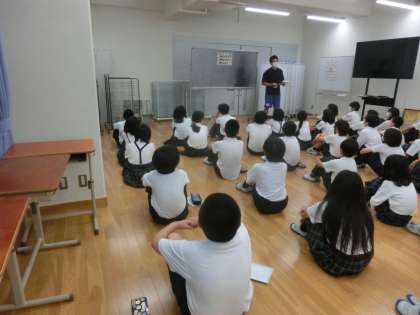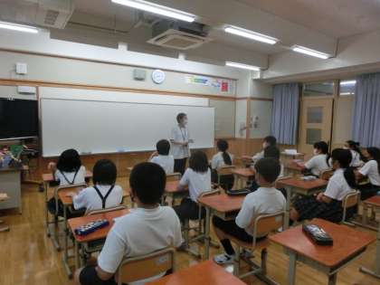 「山の家」から帰ってきた4年生に「次は海の家だから,応援してね!」と話しかけていた5年生…5年生にとっては初めての宿泊学習,不安や緊張もあると思いますが「海の家」の学習にはとても意欲的です。5年生と一緒に学習しています。それぞれの係活動が決り,今日は全体で集まったあとに係ごとに仕事内容の確認や目標を話し合ったりしました。