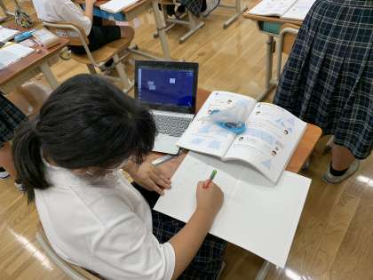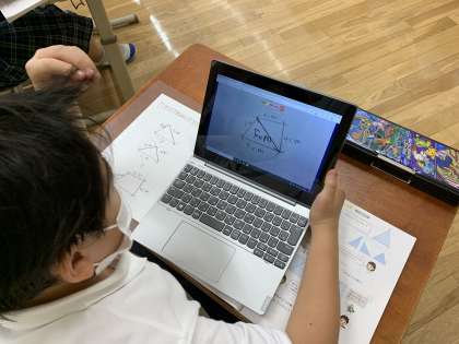 合同な三角形のかき方を使って,合同な四角形のかき方を考えました。また今回は,かくだけでなく,かき方をノートにまとめて,カードや動画にしました。子どもたちはとても楽しそうでした。また見返すことができるので,とても便利ですね。