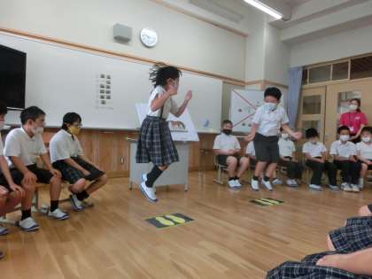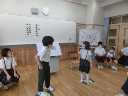 今日はパネルシアターの発表会でした。1〜9年生の縦割りグループ「太陽」と「月」チームにわかれて学習していたのですが,発表会ではお互いの学習の成果を発表しました。どちらのチームも登場人物になりきってセリフやジェスチャーで表現することができました。